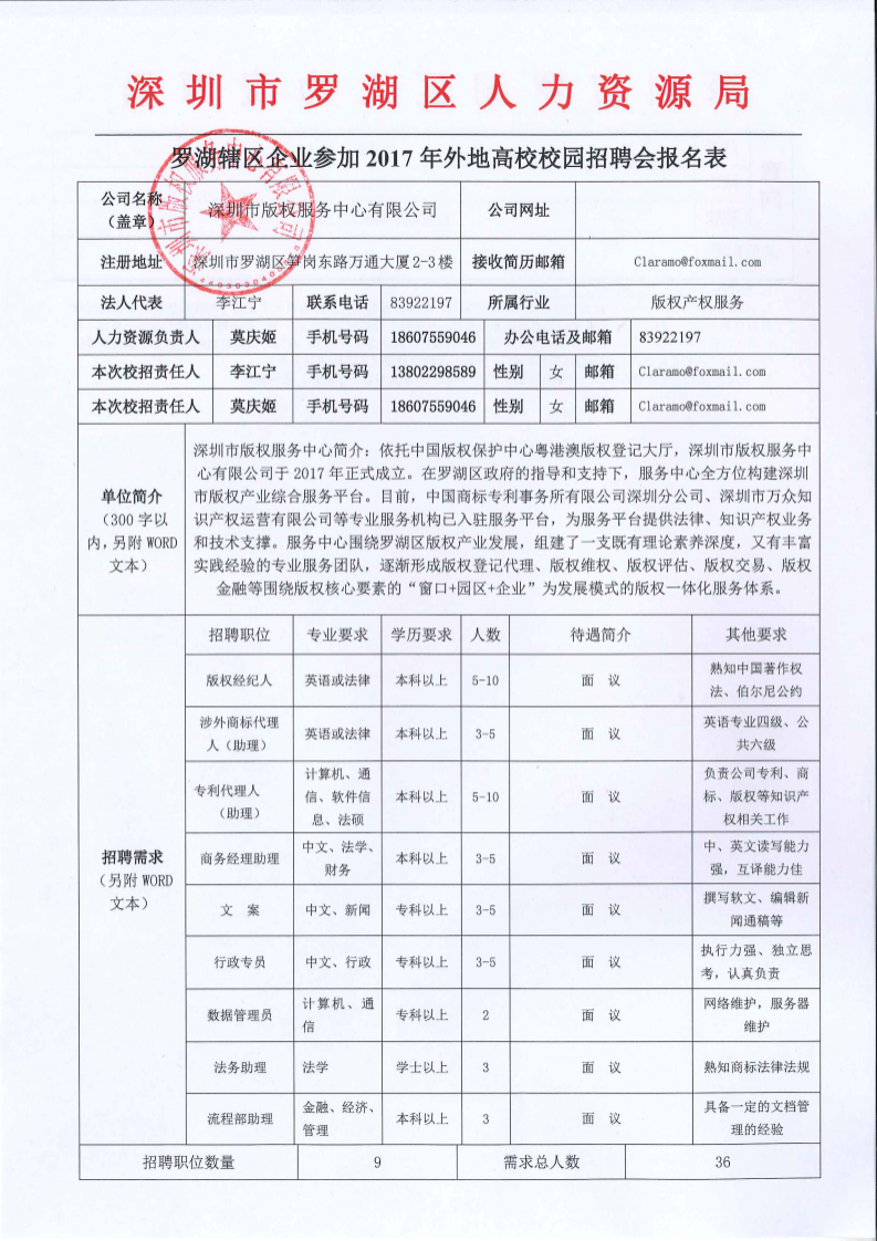 罗湖辖区企业参加2017年外地高校校园招聘会报名表