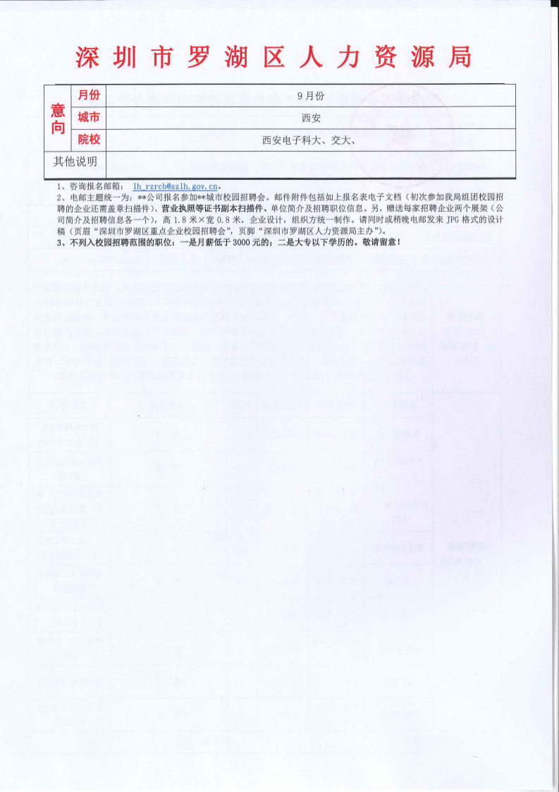 罗湖辖区企业参加2017年外地高校校园招聘报名表
